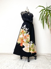 大人可愛いセレブ着物スカートフリーサイズ黒留袖着物リメイクウエストゴムロングスカート