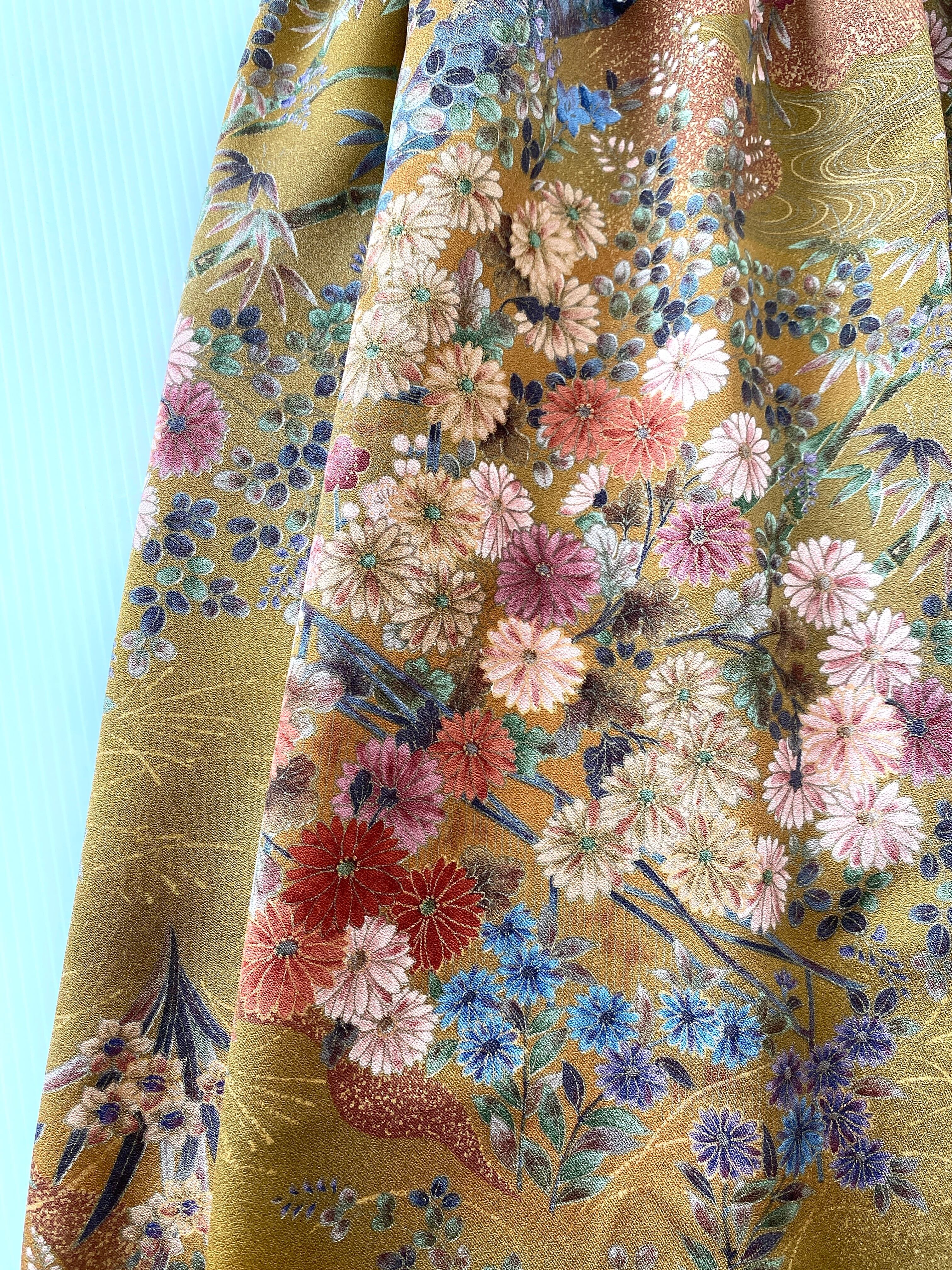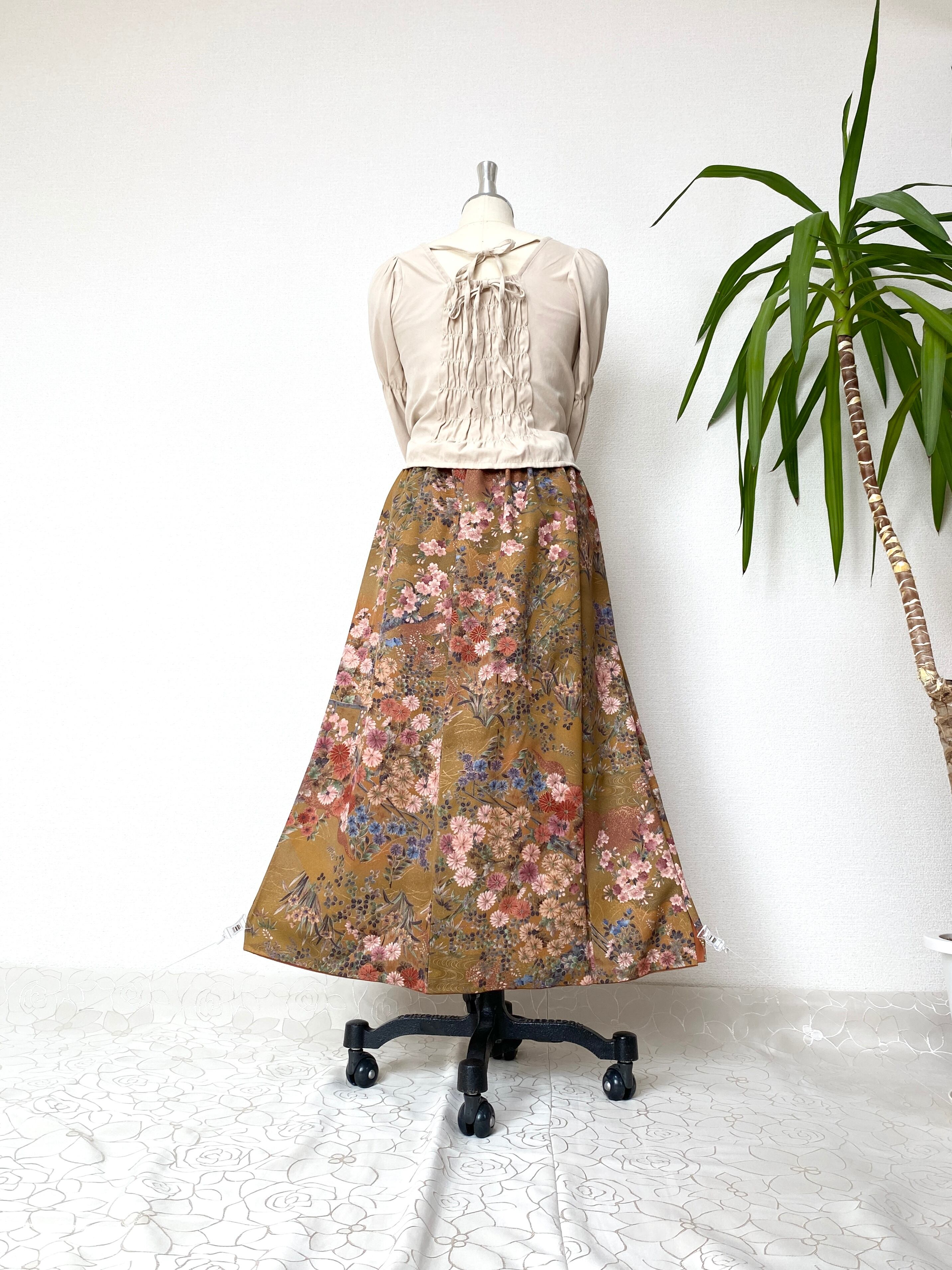 大人可愛いセレブ着物スカートフリーサイズ着物リメイクウエストゴムロングスカートハンドメイド送料込みNO.2831