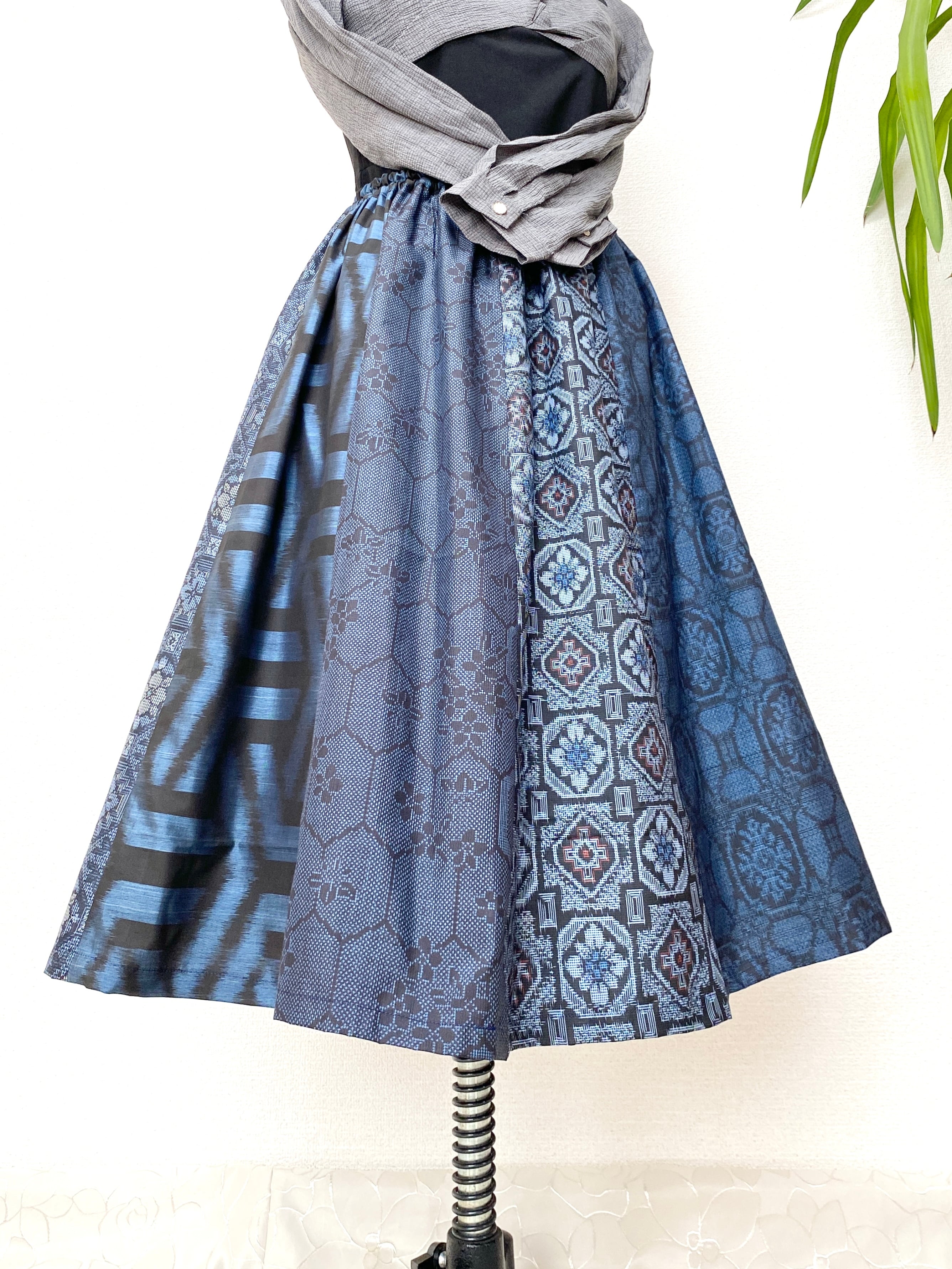 和装だけどスカート、ウエストゴムなので着るのがとてもラクチン体もとても楽な大島紬着物リメイクスカートです。